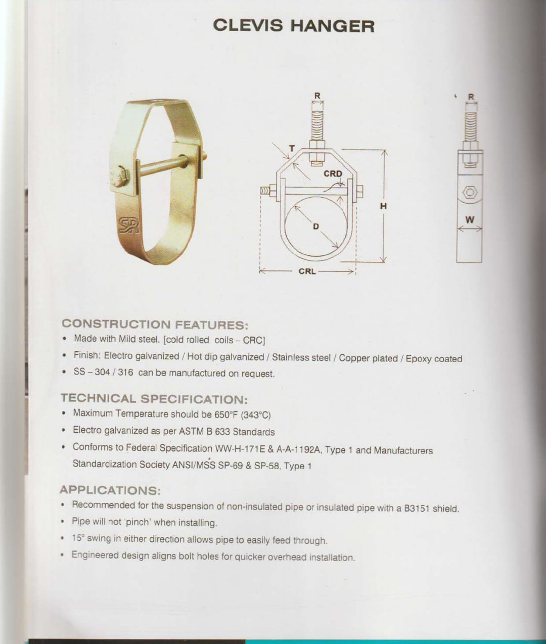 · يتوافق مع المواصفات الفيدرالية WW-H-171E و A-A-1192A، النوع 1، ومعايير جمعية توحيد الشركات المصنعة ANSI/MSS SP-69 و SP-58، النوع 1